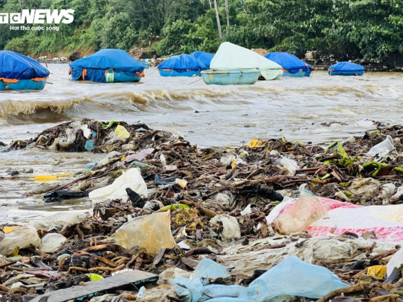 Hàng tấn rác thải phủ kín đoạn bờ biển kéo dài 300 mét ở Quảng Ngãi...